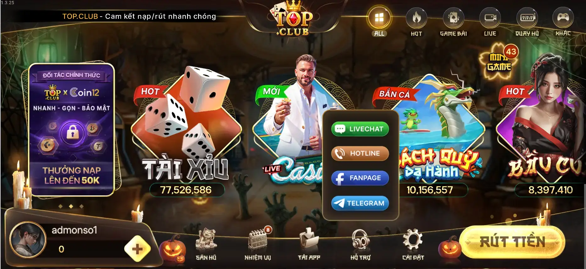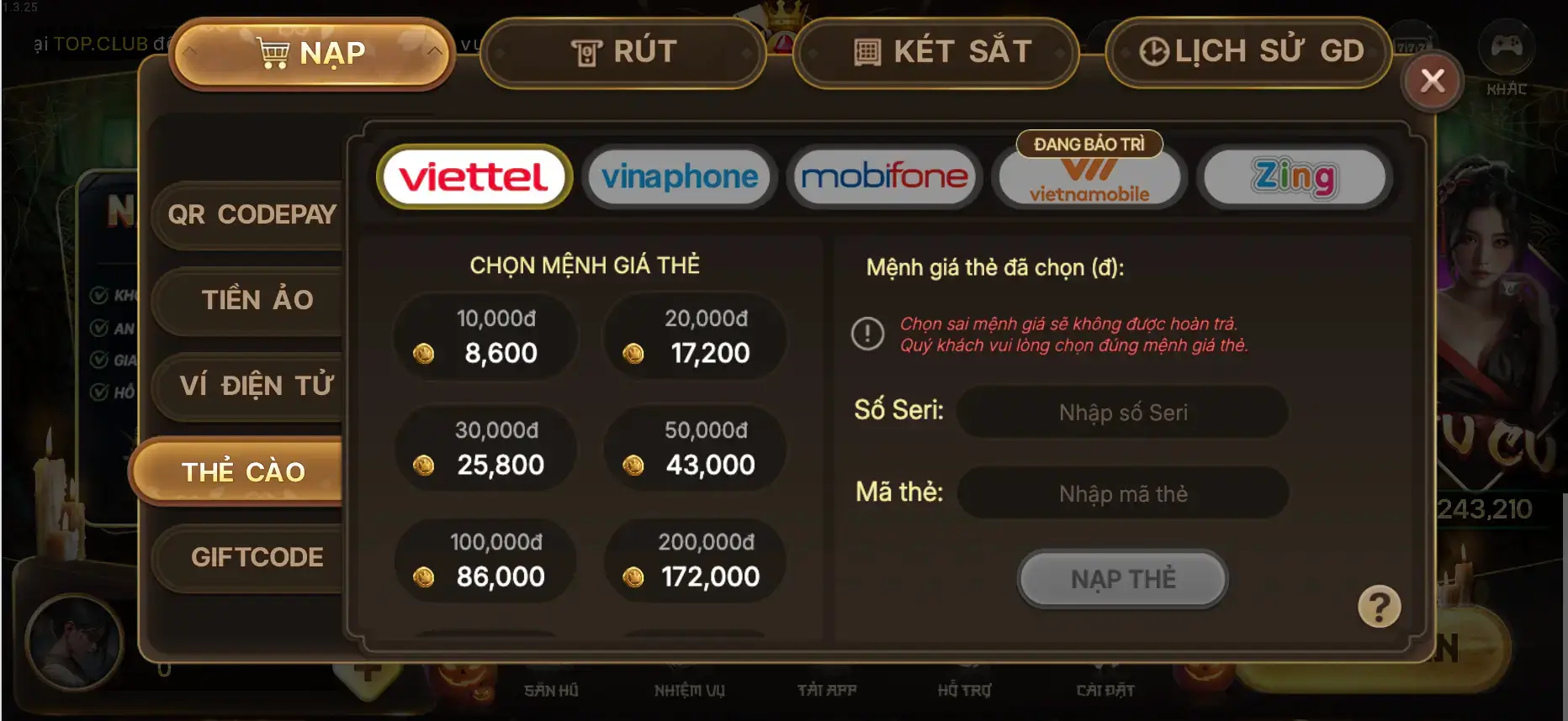 Bước 3: Đăng Nhập và Nạp Tiền Trải Nghiệm Sử dụng tài khoản vừa tạo để đăng nhập, tiến hành nạp tiền và bắt đầu tham gia chinh phục các trò chơi hấp dẫn nhất tại TOP CLUB!