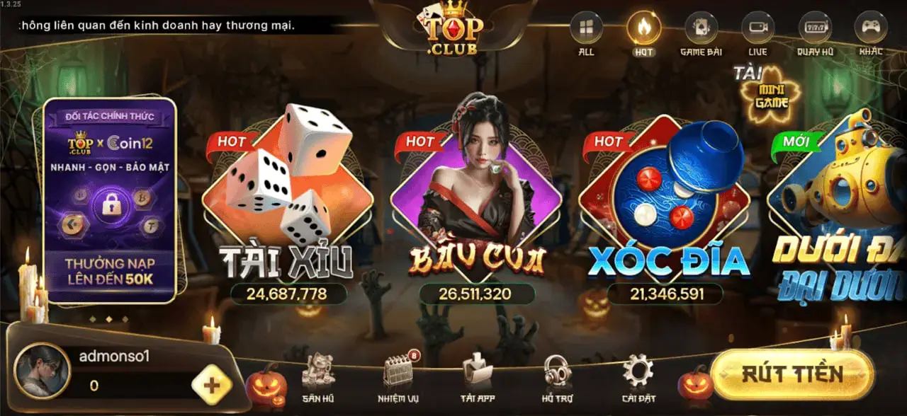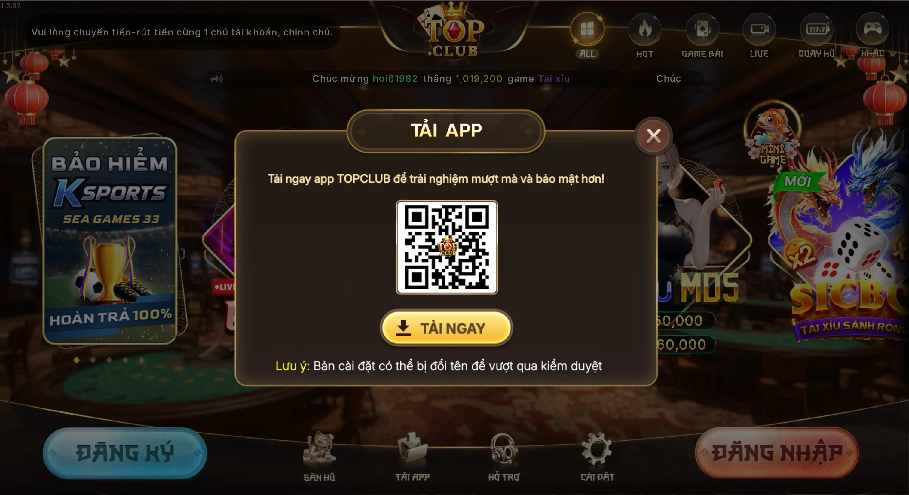 Quý khách chỉ tải app và chơi game tại TOP.CLUB